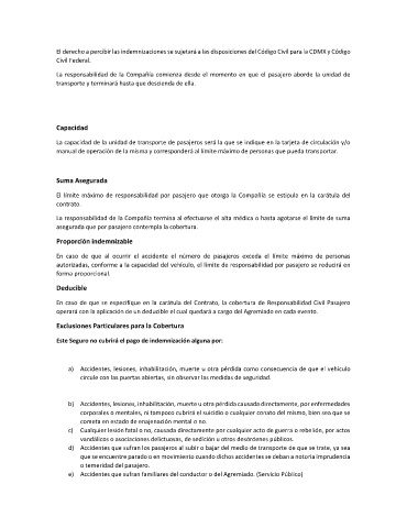 En caso de que se especifique en la carátula del Contrato, la cobertura de Responsabilidad Civil Pasajero
