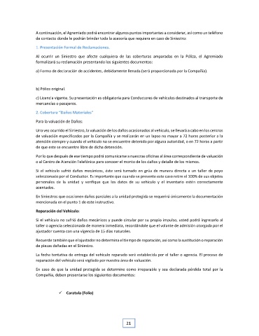 En Siniestros que ocasionen daños parciales a la unidad protegida se requerirá únicamente la documentación