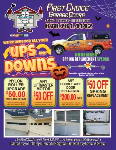 BeforeAfterBeforeAfterBeforeAfterCannot be combined with any other offers.Expires 11/30/25.WITH ANY REPAIRNYLON ROLLERUPGRADECannot be combined with anyother offers. Expires 11/30/25.ANY LIFTMASTERMOTORCannot be combined with anyother offers. Expires 11/30/25.ANY DOUBLE WIDE DOOR REPLACEMENTCannot be combined with anyother offers. Expires 11/30/25.$50 OFFSPRINGREPLACEMENTCannot be combined with anyother offers. Expires 11/30/25.$50.00 $50 OFF OFF$200.00