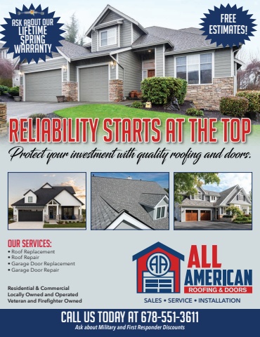 OUR SERVICES:%u2022 Roof Replacement%u2022 Roof Repair%u2022 Garage Door Replacement%u2022 Garage Door RepairResidential & CommercialLocally Owned and OperatedVeteran and Firefighter OwnedCall Us Today at 678-551-3611Ask about Military and First Responder DiscountsFREEESTIMATES!SALES %u2022 SERVICE %u2022 INSTALLATIONASK ABOUT OURLifetime Spring Warranty