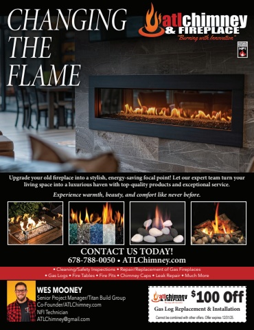 WES MOONEYSenior Project Manager/Titan Build GroupCo-Founder/ATLChimney.comNFI TechnicianATLChimney@gmail.com$100 OffCannot be combined with other offers. Offer expires 12/31/25.Gas Log Replacement & InstallationUpgrade your old fireplace into a stylish, energy-saving focal point! Let our expert team turn your living space into a luxurious haven with top-quality products and exceptional service. Experience warmth, beauty, and comfort like never before.CONTACT US TODAY! 678-788-0050 %u2022 ATLChimney.com%u2022 Cleaning/Safety Inspections %u2022 Repair/Replacement of Gas Fireplaces%u2022 Gas Logs %u2022 Fire Tables %u2022 Fire Pits %u2022 Chimney Caps %u2022 Leak Repair %u2022 Much More