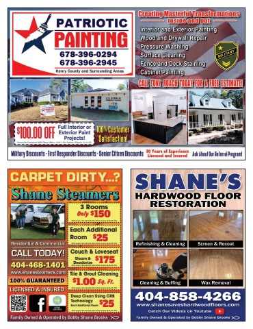 $100.00 OFF Full Interior or Exterior PaintProjects!Cannot be Combined With Other Offers. Limit 1 Per Person. Expires 12-31-25.3 Rooms Couch & LoveseatDeep Clean Using CRB TechnologyEach Additional RoomTile & Grout CleaningSteam & DeodorizeEach AdditionalRoom$150$175$1.00$25$25OnlySq. Ft.With coupon. Not valid with other offers. Expires 12-31-25. TSNWith coupon. Not valid with other offers. Expires 12-31-25. TSNWith coupon. Not valid with other offers. Expires 12-31-25. TSNWith coupon. Not valid with other offers. Expires 12-31-25. TSNWith coupon. Not valid with other offers. Expires 12-31-25. TSNSHANE%u2019SCatch Our Videos on YoutubeHARDWOOD FLOORRESTORATION404-858-4266www.shanesaveshardwoodfloors.comRefinishing & CleaningCleaning & Buffing Wax RemovalScreen & RecoatFamily Owned & Operated by Bobby Shane Brooks