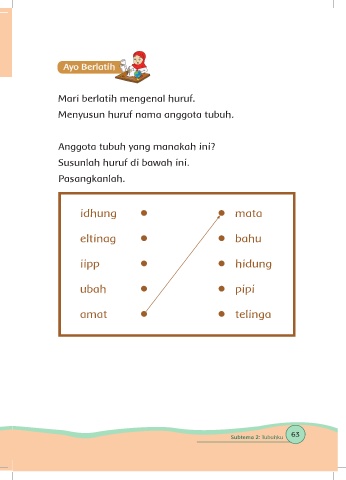 Menyusun huruf nama anggota tubuh.