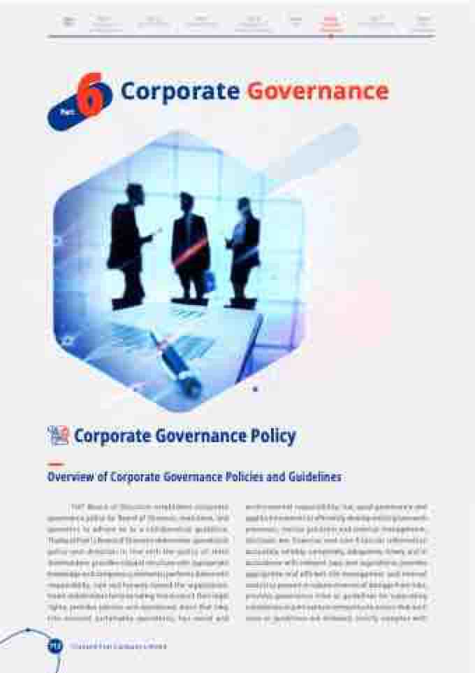 THP Board of Directors establishes corporate governance policy for Board of Directors, executives, and operators to adhere to as a collaboration guideline. Thailand Post’s Board of Directors determines operational policy and direction in line with the policy of state shareholders; provides a board structure with appropriate knowledge and competency elements; performs duties with responsibility, care and honesty toward the organization; treats stakeholders fairly by taking into account their legal rights; provides policies and operational plans that take into account sustainable operations; has social and