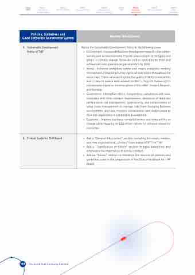 covenants and other relevant requirements, disclosure of data and performance, risk management, cybersecurity, and enhancement of value chain management to manage risks from changing business environments and laws. Promote collaboration with stakeholders to drive the organization's sustainable development.