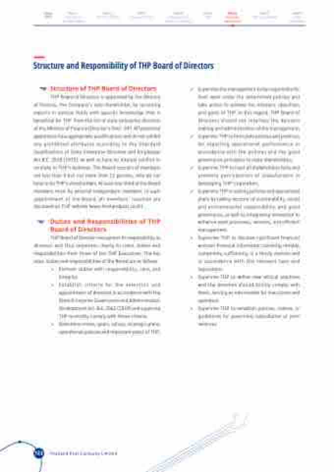 • Establish criteria for the selection and appointment of directors in accordance with the State Enterprise Governance and Administration Development Act, B.E. 2562 (2019) and supervise THP to strictly comply with these criteria;