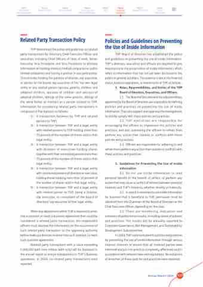 In 2024, THP communicated its policies and practices for preventing the use of inside information through various internal channels to ensure that all involved parties were informed and put into practice completely, effectively and in accordance with relevant laws and regulations. No violations or breaches of these policies and practices were reported.
