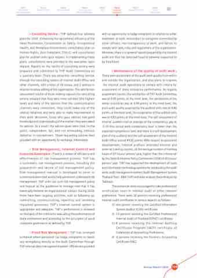 certification exam in internal audit or other relevant professions. There were 26 persons receiving professional internal audit certificates in various aspects as follows :
