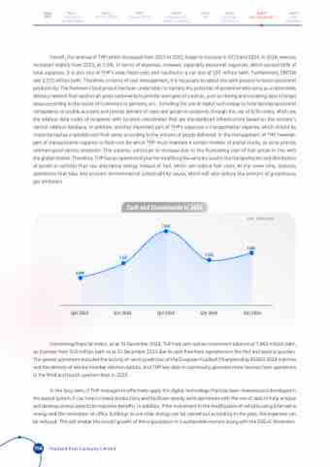 Overall, the revenue of THP, which decreased from 2021 to 2022, began to increase in 2023 and 2024. In 2024, revenue increased slightly from 2023, at 0.3%. In terms of expenses, however, especially personnel expenses, which exceed 50% of total expenses. It is also one of THP’s main fixed costs and resulted in a net loss of 187 million baht. Furthermore, EBITDA was 2,215 million baht. Therefore, in terms of cost management, it is necessary to adjust the work process to boost personnel productivity. The Postman Cloud project has been undertaken to harness the potential of personnel who serve as a nationwide delivery network that reaches all areas nationwide to provide new types of services, such as storing and surveying data in target areas according to the needs of customers or partners, etc., including the use of digital technology to help develop personnel competence to enable accurate and precise delivery of news and goods to recipients through the use of D/ID codes, which are the address data codes of recipients with location coordinates that are standardized infrastructure based on the country’s central address database. In addition, another important part of THP's expenses is transportation expense, which should be characterized as a variable cost that varies according to the volume of goods delivered. In the management of THP, however, part of transportation expense is fixed cost for which THP must maintain a certain number of postal trucks, so as to provide uninterrupted service provision. This expense continues to increase due to the fluctuating cost of fuel prices in line with the global market. Therefore, THP has an operational plan for modifying the vehicles used in the transportation and distribution of goods to vehicles that use alternative energy instead of fuel, which can reduce fuel costs. At the same time, business operations that take into account environmental sustainability issues, which will also reduce the amount of greenhouse gas emissions.
