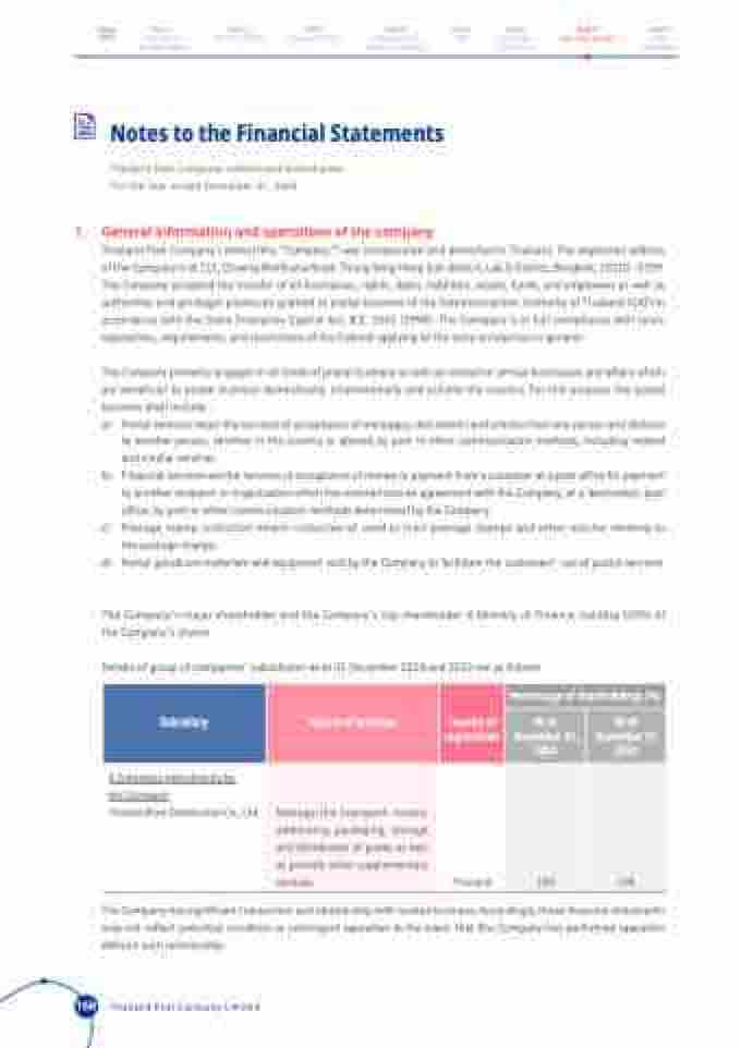 Thailand Post Company Limited (the “Company”) was incorporated and domiciled in Thailand. The registered address of the Company is at 111, Chaeng Watthana Road, Thung Song Hong Sub-district, Lak Si District, Bangkok, 10210 - 0299. The Company accepted the transfer of all businesses, rights, debts, liabilities, assets, funds, and employees as well as authorities and privileges previously granted to postal business of the Communications Authority of Thailand (CAT) in accordance with the State Enterprise Capital Act, B.E. 2542 (1999). The Company is in full compliance with rules, regulations, requirements, and resolutions of the Cabinet applying to the state enterprises in general.