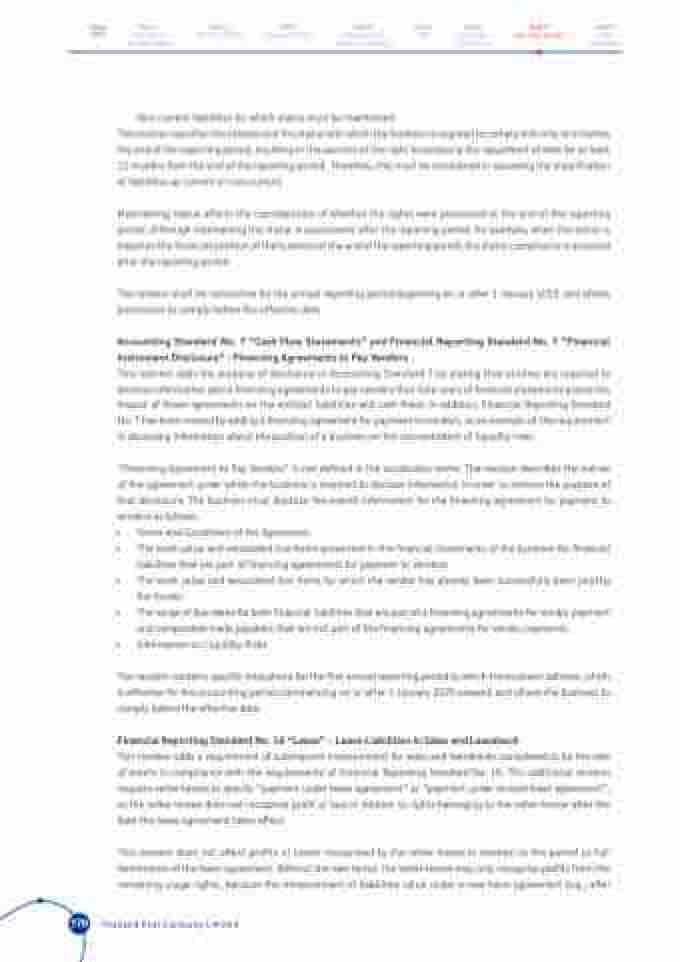 This revision adds the purpose of disclosure in Accounting Standard 7 by stating that entities are required to disclose information about financing agreements to pay vendors that help users of financial statements assess the impact of those agreements on the entities' liabilities and cash flows. In addition, Financial Reporting Standard No. 7 has been revised by adding a financing agreement for payment to vendors, as an example of the requirement in disclosing information about the position of a business on the concentration of liquidity risks.