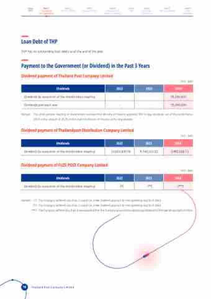 Remark : The 2024 general meeting of shareholders resolved that Ministry of Finance approved THP to pay dividends out of the performance 2023 in the amount of 35.35 million baht to Ministry of Finance as the shareholder.