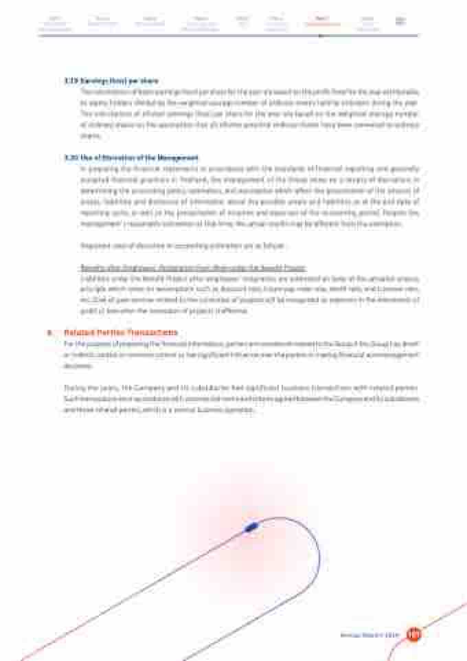 In preparing the financial statements in accordance with the standards of financial reporting and generally accepted financial practices in Thailand, the management of the Group relies on a variety of discretions in determining the accounting policy, estimation, and assumption which affect the presentation of the amount of assets, liabilities and disclosure of information about the possible assets and liabilities as at the end date of reporting cycle, as well as the presentation of incomes and expenses of the accounting period. Despite the management’s reasonable estimation at that time, the actual results may be different from the estimation.