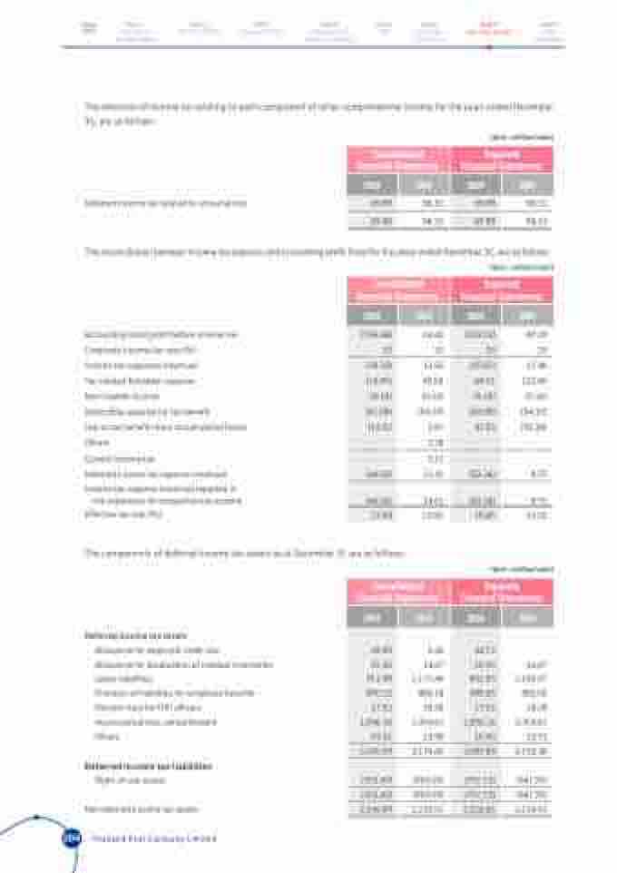 The amounts of income tax relating to each component of other comprehensive income for the years ended December 31, are as follows :
