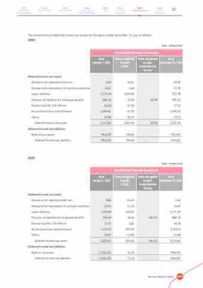 The movements of deferred income tax assets for the years ended December 31, are as follows :