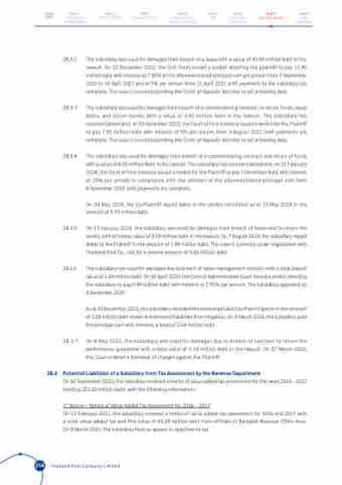 28.3.7 On 6 May 2023, the subsidiary was sued for damages due to breach of contract to return the performance guarantee with a total value of 2.18 million baht in the lawsuit. On 27 March 2024, the Court ordered a dismissal of charges against the Plaintiff.