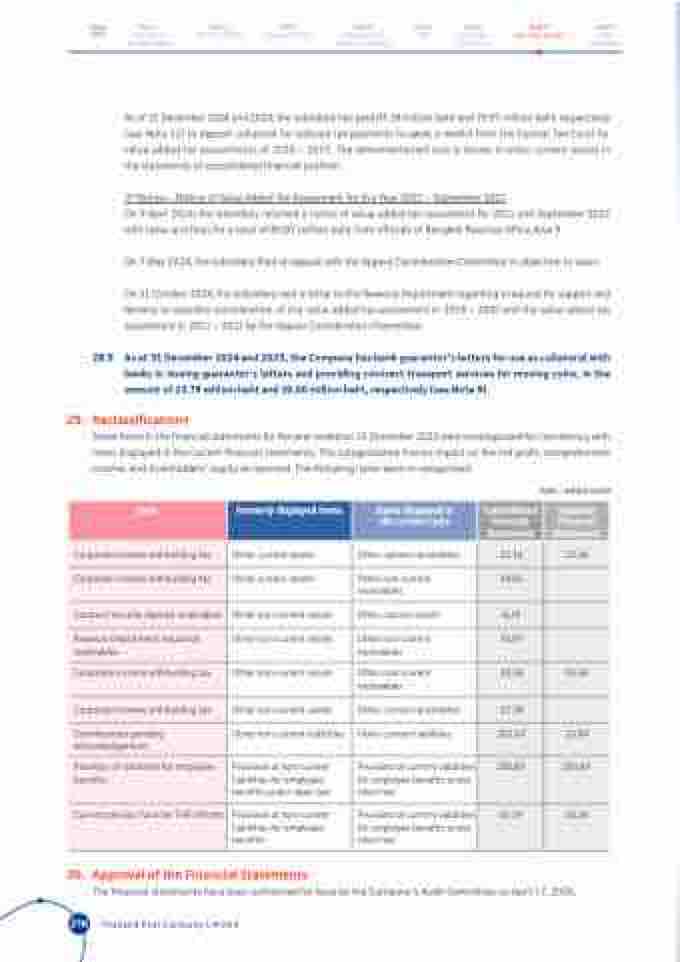 As of 31 December 2024 and 2023, the subsidiary has paid 87.19 million baht and 70.97 million baht, respectively (see Note 12) to deposit collateral for reduced tax payments to await a verdict from the Central Tax Court for value added tax assessments of 2016 – 2017. The aforementioned sum is shown in other current assets in the statements of consolidated financial position.