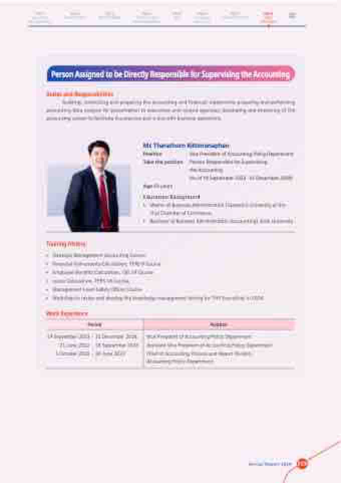 Position Vice President of Accounting Policy Department Take the position Person Responsible for Supervising