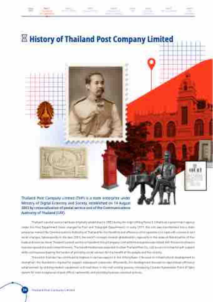 Thailand’s postal service had been originally established in 1883 during the reign of King Rama V, initially as a government agency under the Post Department (later changed to Post and Telegraph Department). In early 1977, the unit was transformed into a state enterprise named the Communications Authority of Thailand for the flexibility and efficiency of its operations to cope with economic and social changes. Subsequently in the year 2003, the world’s changes towards globalization, especially in the areas of liberalization of free trade and services, drove Thailand’s postal service to transform into a Company Limited format as previously stated, with the aim to enhance business operations and competitiveness. The transformation was expected to allow Thailand Post Co., Ltd. to earn incomes for self-support while continuously bearing the burden of providing social services for the benefit of the people and the country.