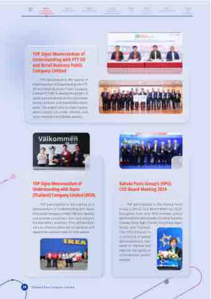 THP participated in the signing of a Memorandum of Understanding with PTT Oil and Retail Business Public Company Limited (PTTOR) to develop the project of postal business service centers, alternative energy stations, and sustainable forest parks. The project aims to create spaces where people can meet, interact, and enjoy convenient and flexible services.