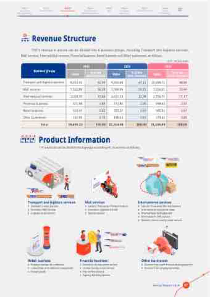 THP’s revenue structure can be divided into 6 business groups, including Transport and logistics services, Mail services, International services, Financial business, Retail business and Other businesses, as follows :