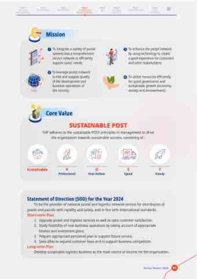 To be the provider of national postal and logistics network service for distribution of goods and parcels with rapidity and safety, and in line with international standards. Short-term Plan