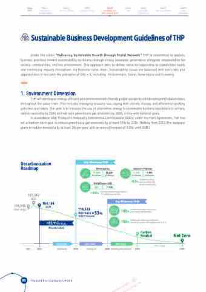 THP will develop an energy-efficient and environmentally friendly postal system by collaborating with stakeholders throughout the value chain. This includes managing resource use, coping with climate change, and efficiently handling pollution and waste. The goal is to increase the use of alternative energy in sustainable business operations to achieve carbon neutrality by 2050 and net-zero greenhouse gas emissions by 2065, in line with national goals.