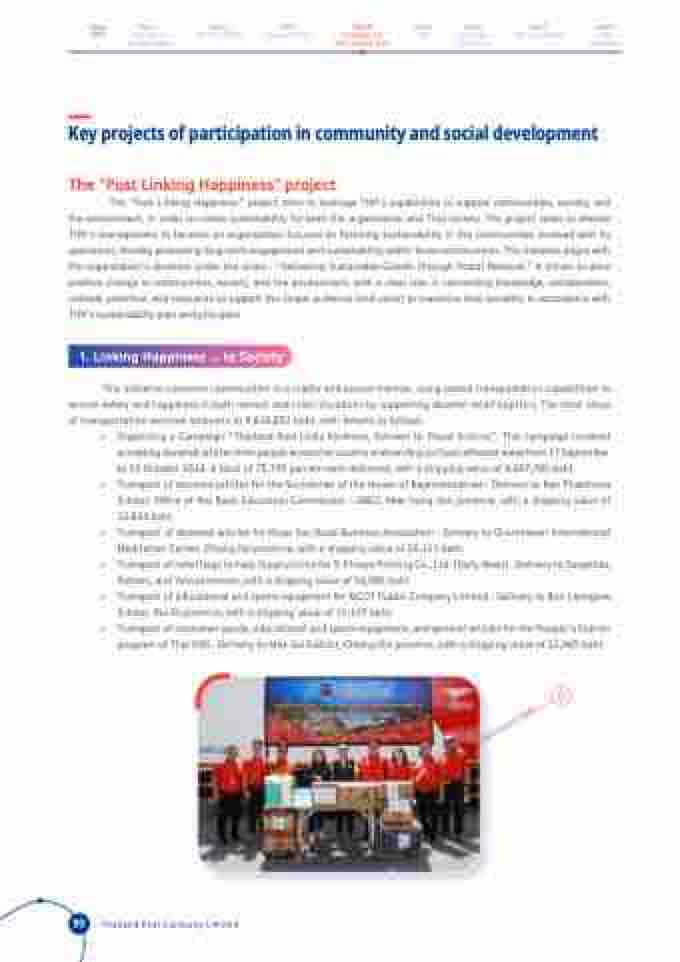 This initiative connects communities in a stable and secure manner, using postal transportation capabilities to ensure safety and happiness in both normal and crisis situations by supporting disaster relief logistics. The total value of transportation services amounts to 9,818,852 baht, with details as follows :