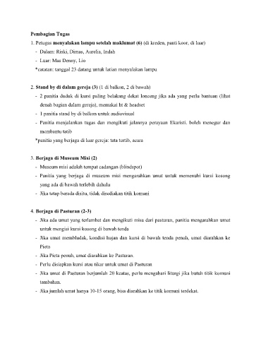 - Panitia menjalankan tugas dan mengikuti jalannya perayaan Ekaristi. boleh menegur dan