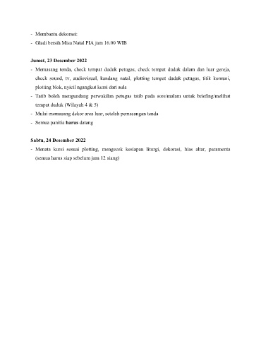 - Gladi bersih Misa Natal PIA jam 16.00 WIB