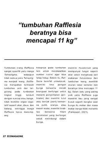 tumbuhan  unik dan ter-               bunga      berwarna        merah     beratnya bisa mencapai 11