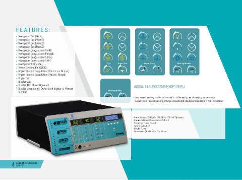 FEATURES: VESSEL SEALING SYSTEM (OPTIONAL) ELECTROSURGICAL 6 UNITS