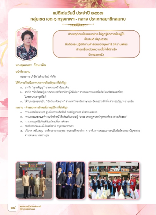 ๔. สมาชิกสมาคมแม่ดีเด่นแห่งชาติ กรุงเทพมหานคร