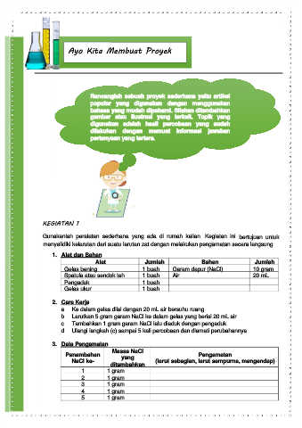 Gelas bening 1 buah Garam dapur (NaCl) 10 gram
