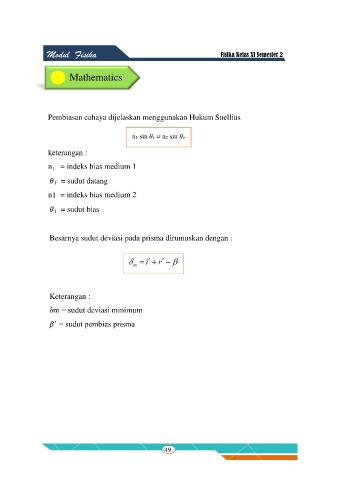 Besarnya sudut deviasi pada prisma dirumuskan dengan :
