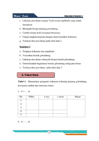 c. Lakukan percobaan sampai 5 kali sesuai amplitudo yang sudah