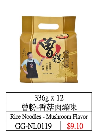 336g x 12 曾粉-香菇肉燥味 Rice Noodles - Mushroom Flavor GG-NL0119 $9.10