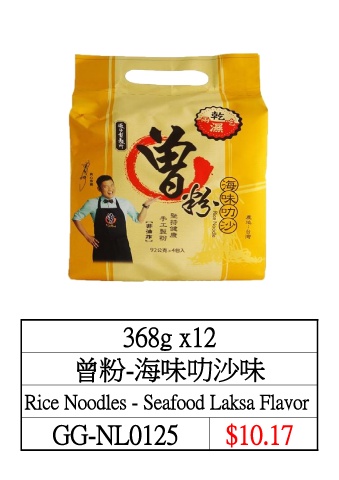 368g x12 曾粉-海味叻沙味 Rice Noodles - Seafood Laksa Flavor GG-NL0125 $10.17
