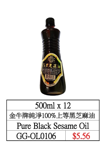 500ml x 12 金牛牌純淨100%上等黑芝麻油 Pure Black Sesame Oil GG-OL0106 $5.56