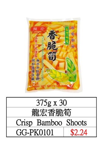 375g x 30 龍宏香脆筍 Crisp Bamboo Shoots GG-PK0101 $2.24