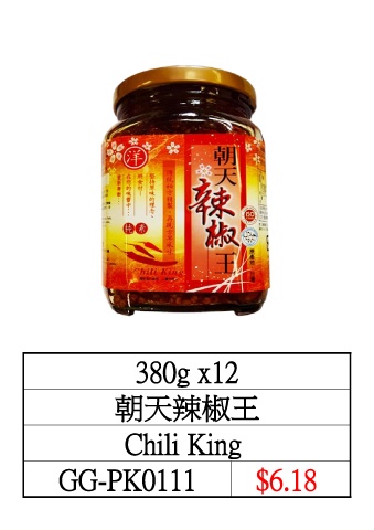 380g x12 朝天辣椒王 Chili King GG-PK0111 $6.18