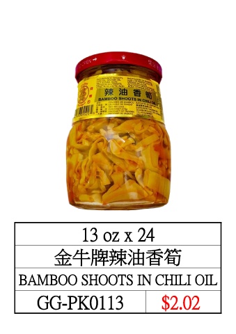 13 oz x 24 金牛牌辣油香筍 BAMBOO SHOOTS IN CHILI OIL GG-PK0113 $2.02