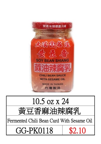 10.5 oz x 24 黃豆香麻油辣腐乳 Fermented Chili Bean Curd With Sesame Oil GG-PK0118 $2.10