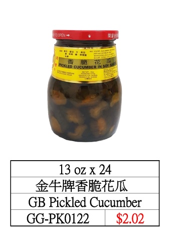 13 oz x 24 金牛牌香脆花瓜 GB Pickled Cucumber GG-PK0122 $2.02