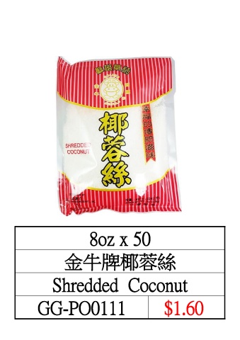 8oz x 50 金牛牌椰蓉絲 Shredded Coconut GG-PO0111 $1.60