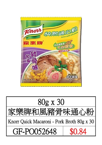 80g x 30 家樂牌和風豬骨味通心粉 Knorr Quick Macaroni - Pork Broth 80g x 30 GF-PO052648 $0.84