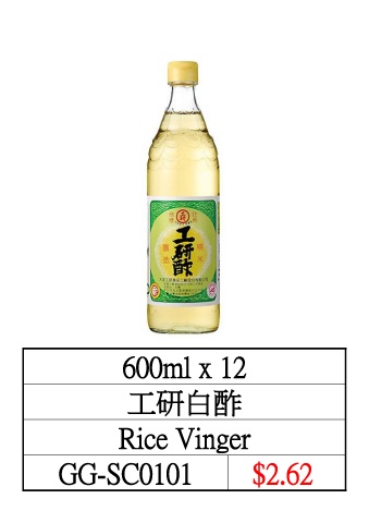 600ml x 12 工研白酢 Rice Vinger GG-SC0101 $2.62