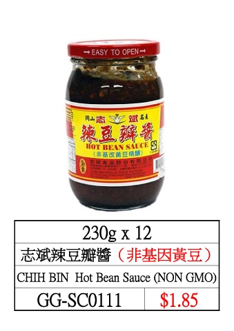 230g x 12 志斌辣豆瓣醬(非基因黃豆) CHIH BIN Hot Bean Sauce (NON GMO) GG-SC0111 $1.85