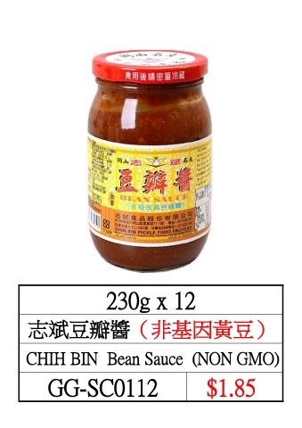230g x 12 志斌豆瓣醬(非基因黃豆) CHIH BIN Bean Sauce (NON GMO) GG-SC0112 $1.85