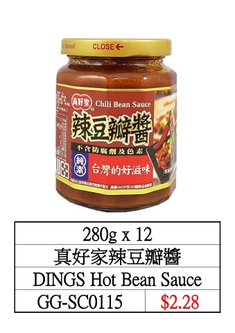 280g x 12 真好家辣豆瓣醬 DINGS Hot Bean Sauce GG-SC0115 $2.28